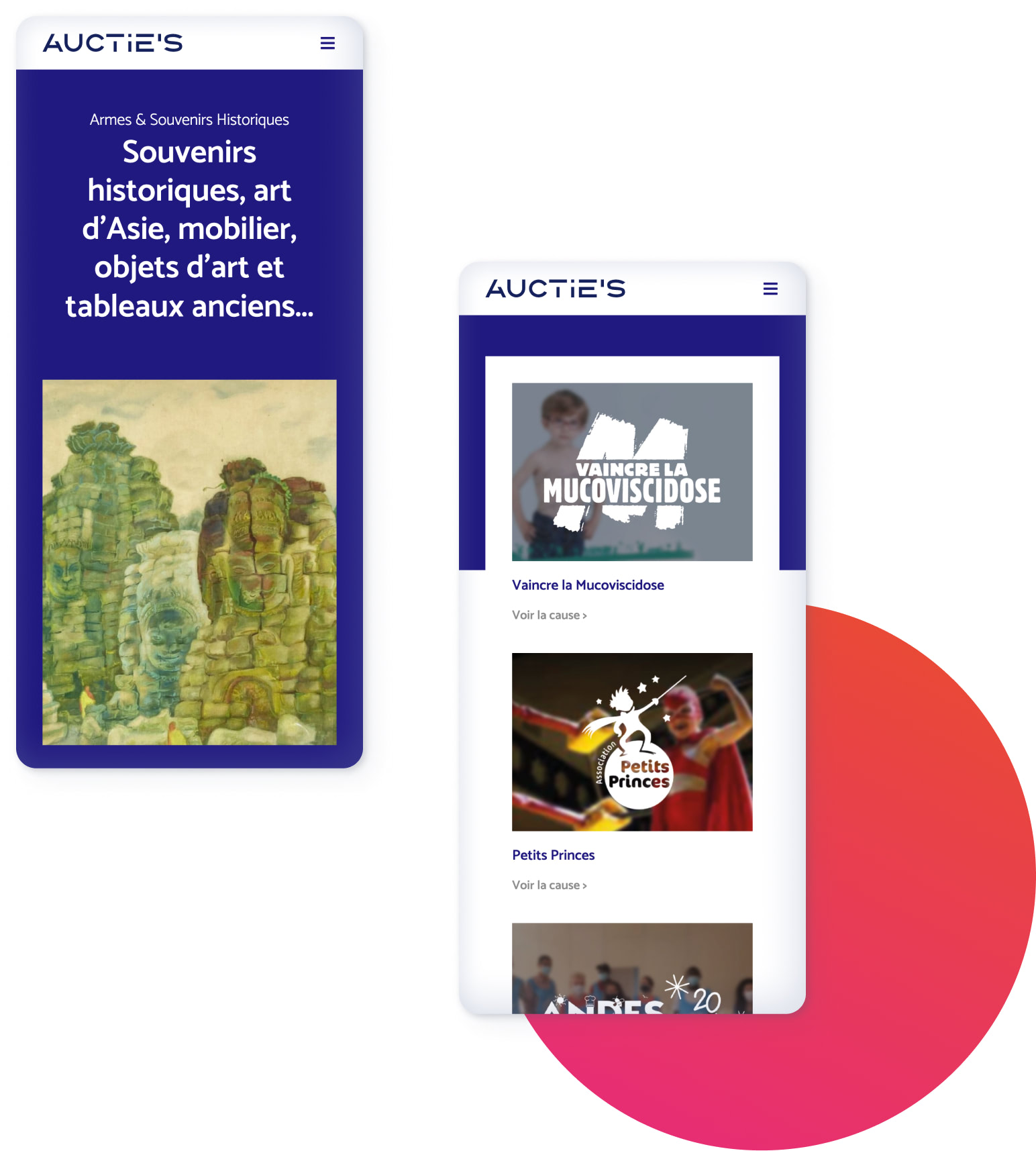 Auctie’s intervient dans l’estimation et la vente aux enchères d’objets d’exception. Chaque vente permet de soutenir un projet solidaire : en faveur de la jeunesse, de la recherche médicale, de l’aide aux plus démunis.