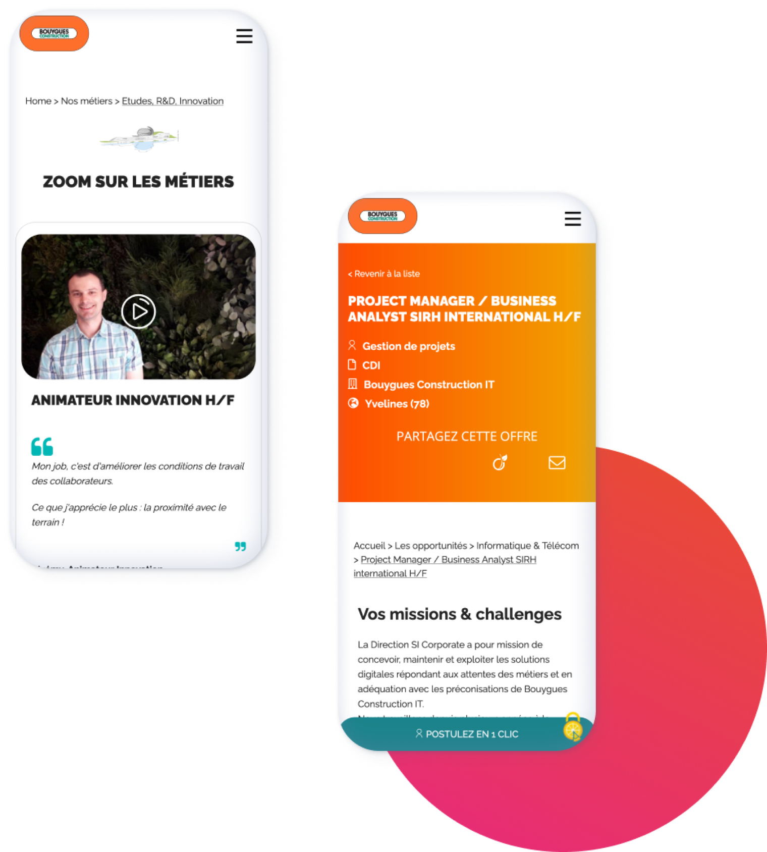 L’objectif principal de notre accompagnement était de piloter le projet de refonte du site carrière aux côtés de l’équipe Bouygues Construction. Nous avons conçu un site vitrine regroupant toutes les offres du groupe et proposant des contenus riches liés aux métiers du groupe.