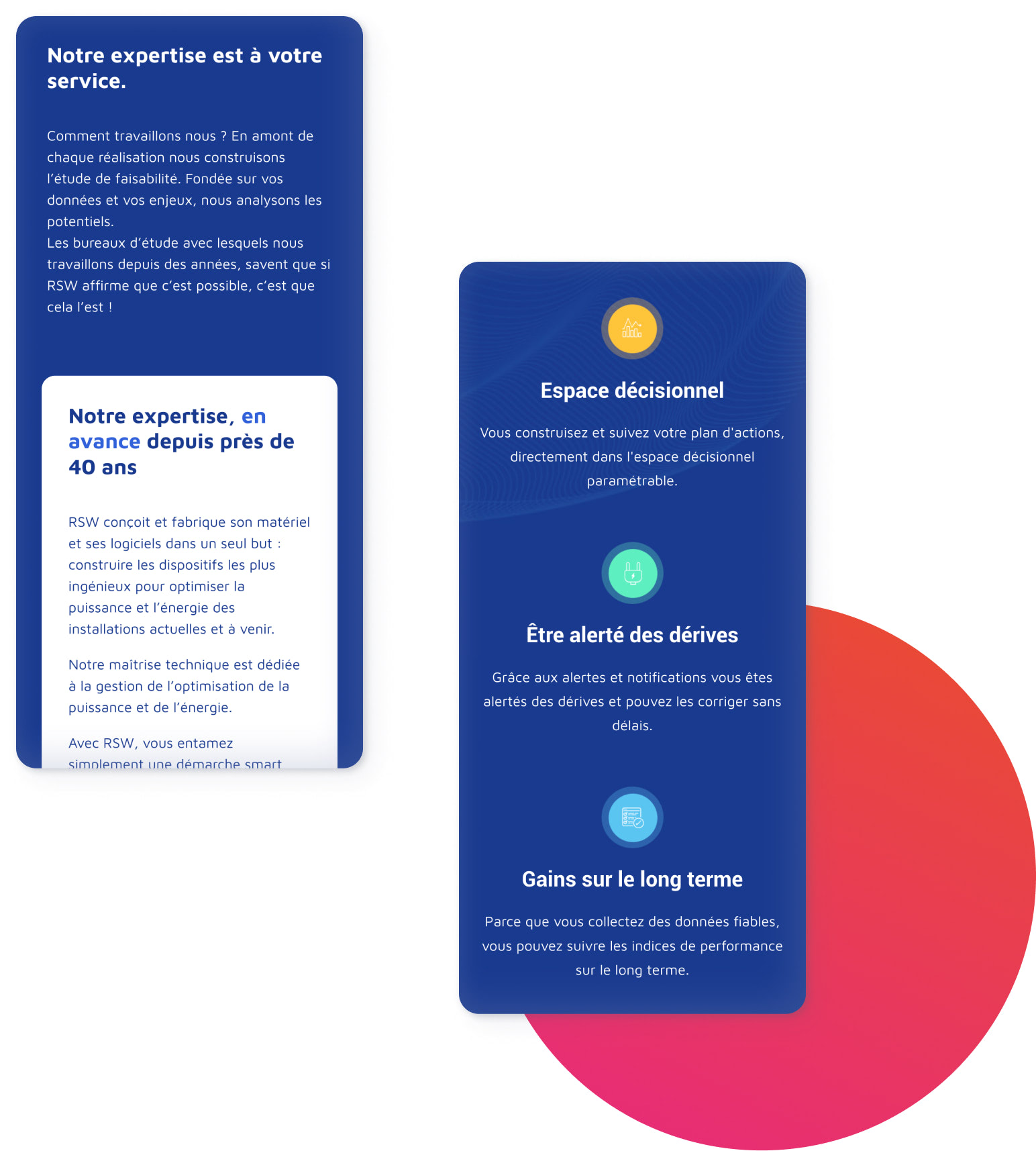 RSW conçoit et fabrique du matériel et des logiciels pour optimiser la puissance et l’énergie des installations professionnelles : cuisines collectives, restaurants, boulangeries, blanchisseries et industries métallurgiques.